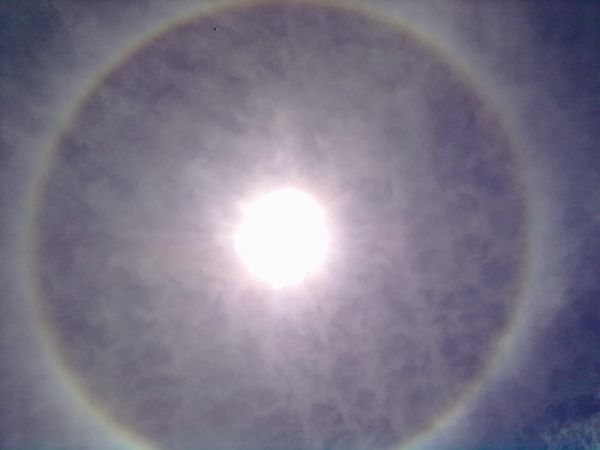 Halo is an optical phenomenon of a circle of light on around the Sun or Moon light sources. Halo Phenomena is a circle like a rainbow which surrounds the sun. Halo is a more common phenomenon in the sky.